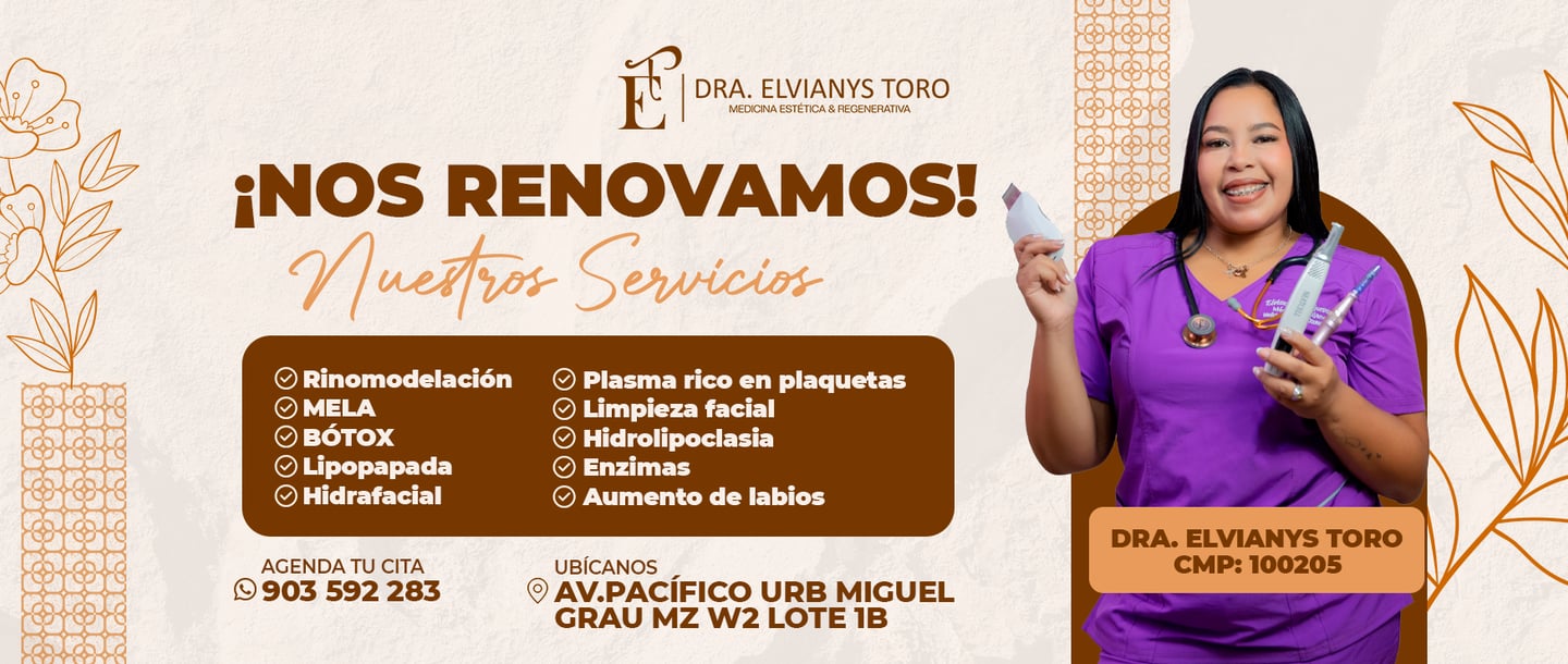 Av. Pacífico Mz w2 Lt. 1B, Nuevo Chimbote consultas@doctoraelvianystoro.com +51 977425766